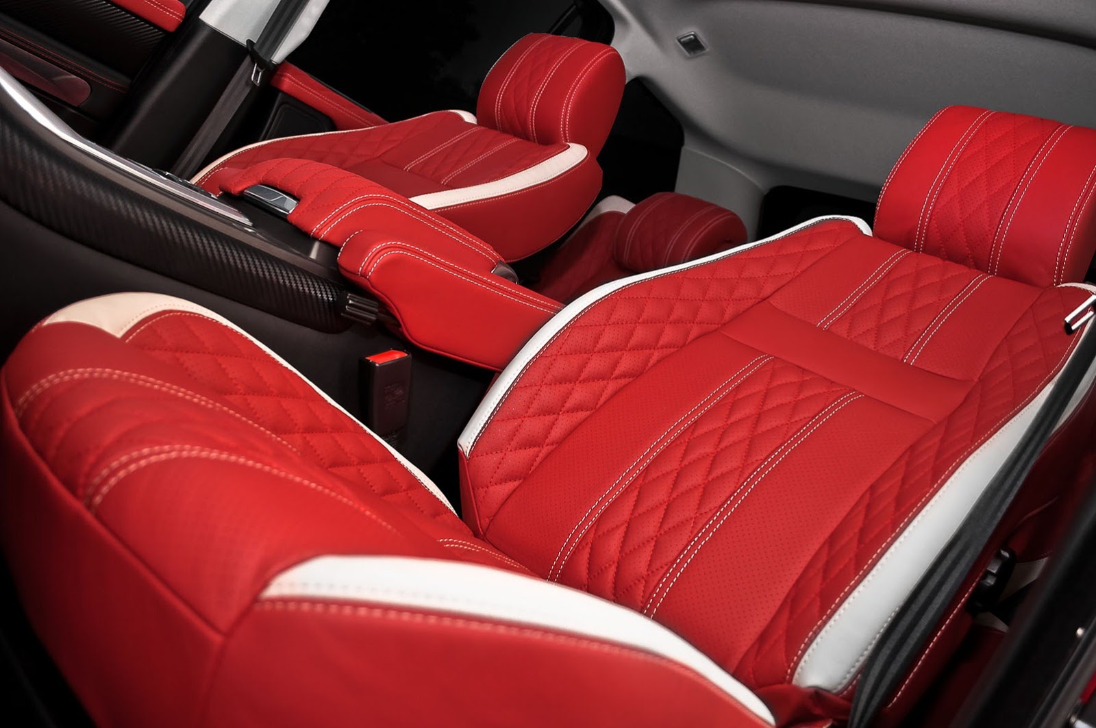 En el interior, Kahn sigue el mismo color negro y rojo con la adición de color blanquecino costuras y refuerzos en el acolchado y los asientos de cuero perforado.